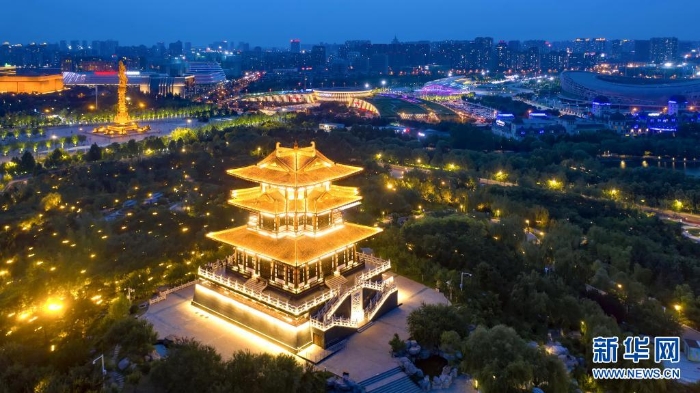 7月25日拍攝的唐山南湖景區(qū)夜色(無人機(jī)照片)。