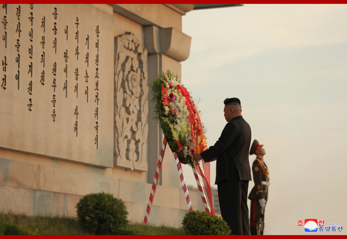 報道稱,伴隨著《獻花曲》響起,金正恩名義的花圈敬獻在中朝友誼塔前,花圈緞帶上寫有“以全體朝鮮人民的名義,致以崇高的敬意。代表朝鮮人民金正恩”的字樣。