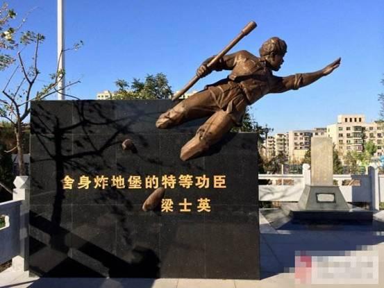 這時二縱隊五師十五團八連二排五班戰(zhàn)斗組長梁士英前去實施爆破,他脫下棉衣,抓爆破筒帶上兩顆手榴彈,匍匐著身子爬行,接近到地堡前10來米處一個小土坎,他以土坎做掩護,甩出兩枚手榴彈,趁著炸起的煙霧,躍到了地堡下,將爆破筒塞進地堡,轉身正要撤離,不料碉堡內的守軍把爆破筒推了出來,掉在地上冒著白煙,在這萬分危急的時刻,梁士英拾起爆破筒猛地又塞進碉堡里,他剛一松手,爆破筒又被推出了1尺多,見此情景,梁士英用全身的力氣頂住了爆破筒。“轟”的一聲巨響,地堡被炸毀了,梁士英也壯烈犧牲了?!盀榱菏坑蟪稹钡目谔柟奈柚粨舨筷犨M入了縱深戰(zhàn)斗。