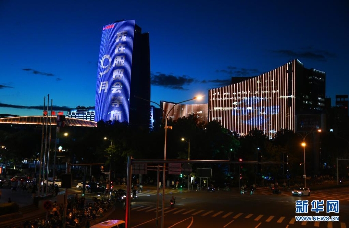 當日,北京中關(guān)村中鋼大廈、望京社區(qū)樓體、奧林匹克公園觀光塔等多個點位建筑外墻和戶外大屏同時“點亮”,迎接9月將在北京舉行的2021年中國國際服務(wù)貿(mào)易交易會。