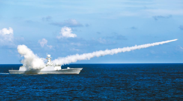 大陸宣布在南海舉行大范圍軍事訓練,演習范圍超過10萬平方公里。圖為2016年7月解放軍在海南島至西沙附近實彈演習資料照片。(新華社)