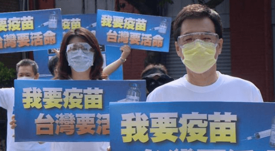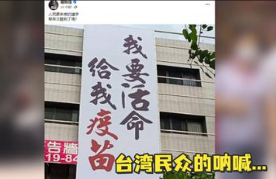 島內(nèi)疫苗短缺,民眾掛出“給我疫苗,我要活命”的橫幅 圖片來源:臺媒