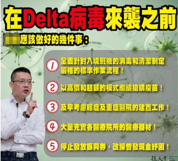 最后第五點(diǎn)則是紓困振興的問題,孫大千直言,民進(jìn)黨應(yīng)該立即放棄多此一舉的振興券,立刻改為普發(fā)現(xiàn)金;振興券的用意是為了讓民眾出門消費(fèi),但若疫情緊張,不應(yīng)該鼓勵民眾出門群聚、增加社交活動,在疫苗普及率根本無法達(dá)成群體免疫狀況的臺灣,倘若Delta病毒不幸入侵,必然會火上加油助長疫情的擴(kuò)散。