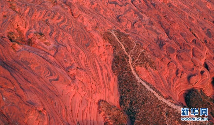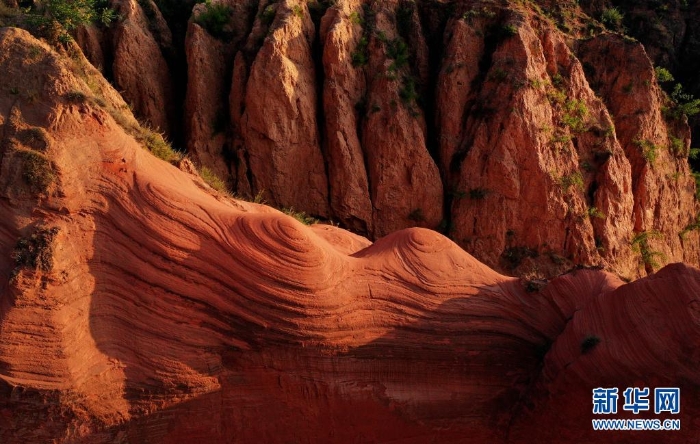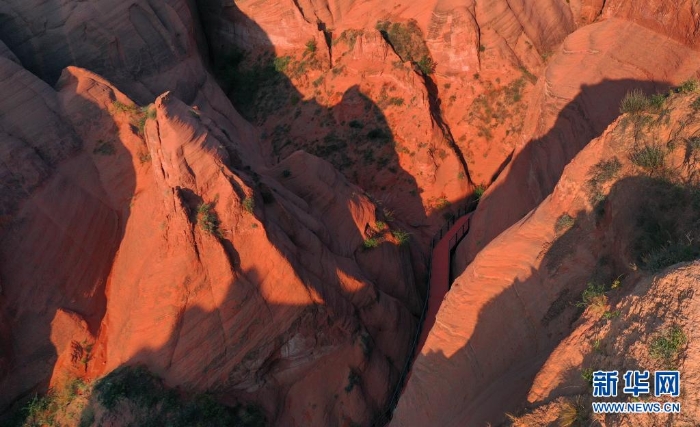 陜西省靖邊縣龍洲鎮(zhèn)波浪谷丹霞景區(qū)地處陜北黃土高原,峽谷四面環(huán)山,線谷、巷谷、絕壁等構成了特有的波浪形砂巖地貌,景觀獨特。
