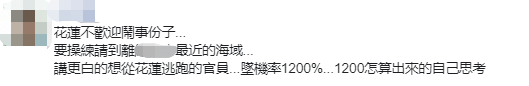 還有網(wǎng)友表達(dá)了不滿,稱“花蓮不歡迎鬧事分子,要操練請(qǐng)到離‘總統(tǒng)府’最近的海域?!?/p>