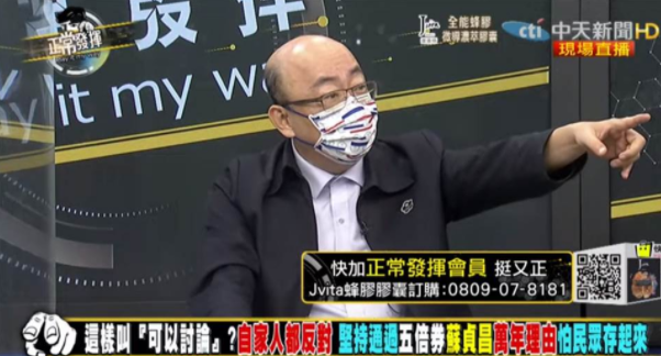 前民進黨“立委”郭正亮指稱,24“綠委”反5倍券,蘇貞昌為何硬干?(圖/中天新聞畫面)