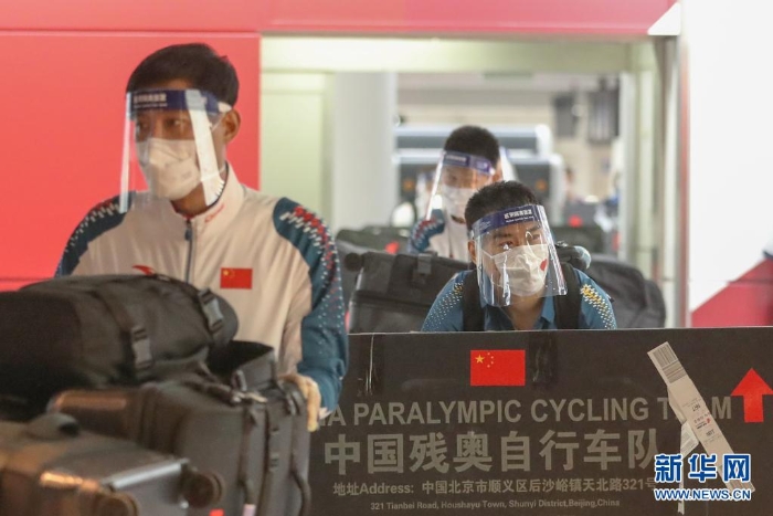 當(dāng)日,參加?xùn)|京殘奧會的中國體育代表團(tuán)首批約190人的團(tuán)隊抵達(dá)東京。首批隊伍包括參加自行車、游泳、盲人門球和田徑項目的運動員。