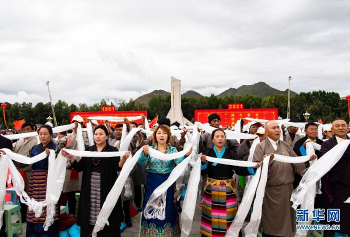 當日,西藏各族各界干部群眾2萬多人歡聚在拉薩布達拉宮廣場,熱烈慶祝西藏和平解放70周年。
