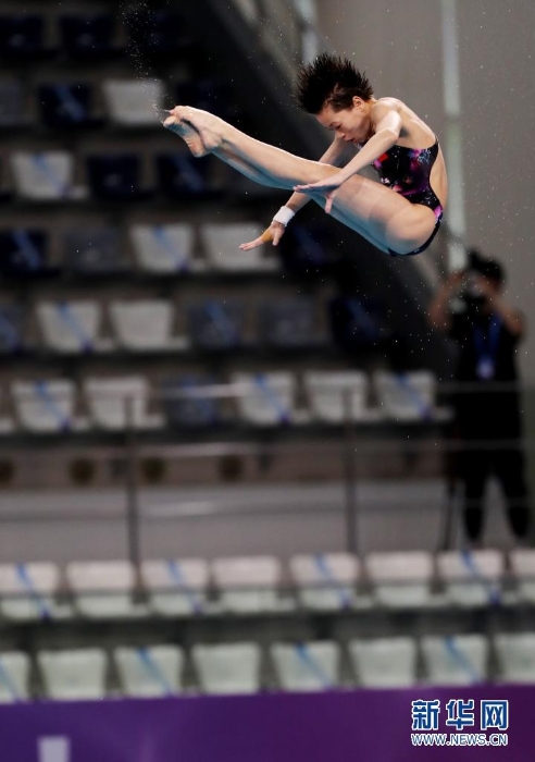 2020年10月4日,全紅嬋在比賽中。當(dāng)日,在河北奧體中心舉行的2020年全國跳水冠軍賽暨東京奧運(yùn)會(huì)、世界杯預(yù)選賽女子10米跳臺決賽中,廣東海印隊(duì)選手全紅嬋奪得冠軍。