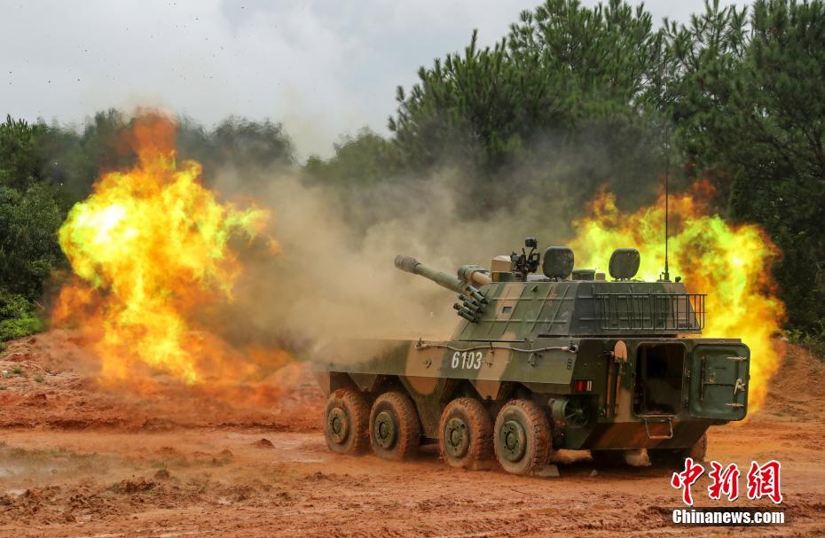 8月17日,第72集團(tuán)軍某旅所屬炮兵分隊(duì)在野外陌生地域按照實(shí)戰(zhàn)要求進(jìn)行實(shí)兵實(shí)彈戰(zhàn)術(shù)演練,先后進(jìn)行了山林地帶機(jī)動(dòng)、占領(lǐng)陣地、彈藥補(bǔ)給、搜索目標(biāo)、火力打擊等內(nèi)容的訓(xùn)練,重點(diǎn)訓(xùn)練官兵對(duì)裝備操作技能、信息化數(shù)據(jù)采集分析、戰(zhàn)斗協(xié)同等能力的提升。圖為炮兵分隊(duì)進(jìn)行單炮間瞄精準(zhǔn)射擊。中新社發(fā) 張毛 攝 圖片來(lái)源:CNSPHOTO