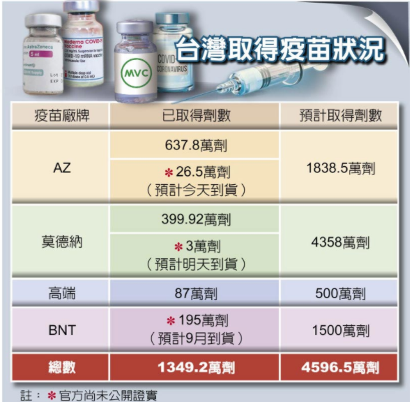 臺灣取得疫苗狀況。來源:臺灣《中國時報》