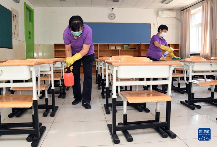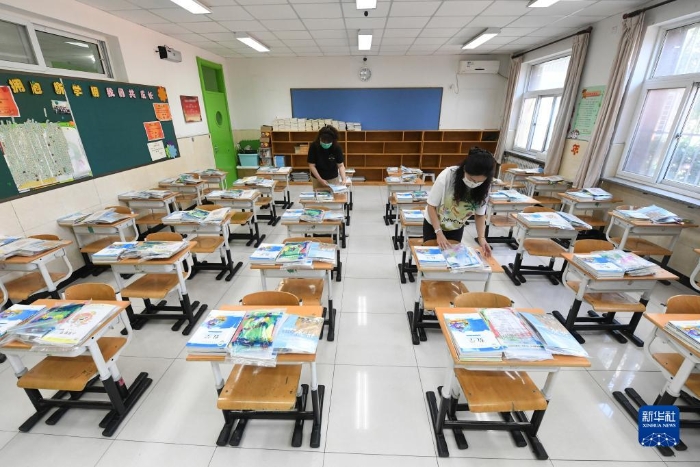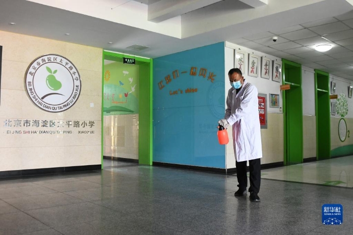 新學(xué)期臨近,北京市海淀區(qū)太平路小學(xué)做好學(xué)生教材分發(fā)、教室布置等開學(xué)準(zhǔn)備。與此同時(shí),學(xué)校對教學(xué)樓樓道、教室以及食堂廚房等重點(diǎn)區(qū)域定期消毒,保障環(huán)境衛(wèi)生。