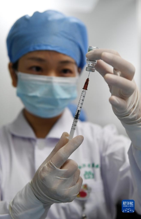 8月27日,在廣西南寧市青秀區(qū)方園社區(qū)衛(wèi)生服務(wù)中心,醫(yī)務(wù)人員在做新冠疫苗接種準(zhǔn)備。