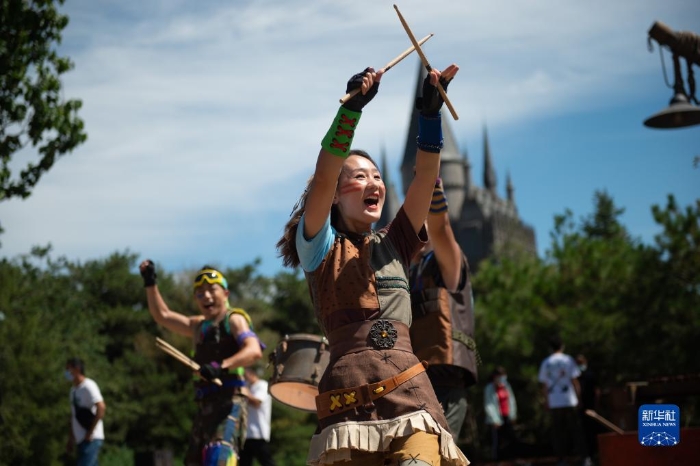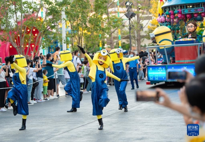 8月25日,演員在北京環(huán)球影城花車巡游中表演。