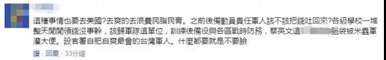 也網(wǎng)友痛批:這種事情也要去美國?(就是)去爽的和去浪費民脂民膏。之前“后備動員責(zé)任軍人”(被裁撤)該不該把錢吐回來?各級學(xué)校一堆整天閑閑領(lǐng)錢沒事干,設(shè)官署自肥自爽最會的“臺灣軍人”,什么都要就是不要臉。