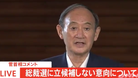 菅義偉3日在首相官邸正式向記者宣布將放棄參選自民黨總裁(圖片來(lái)源:TBS)