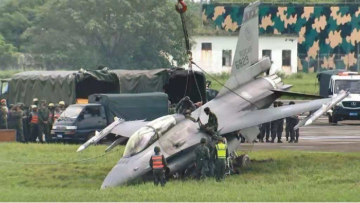 當天發(fā)生意外的F-16雙座機來自花蓮基地,屬于操演預備機,2位中校飛行員事發(fā)后沒有受傷,飛機輕損,臺軍初步研判,該機是預備機,應是降落時速度沒掌握好,快了些,加上機場跑道因模擬屏佳戰(zhàn)備道而縮短,以致飛機滑出跑道。