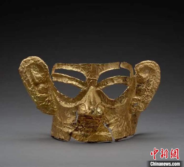 出土的完整金面具。四川省文物考古研究院供圖(來源:中新網(wǎng))