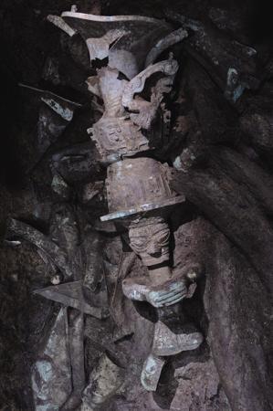 目前,3號(hào)“祭祀坑”發(fā)掘已近尾聲,4號(hào)“祭祀坑”發(fā)掘已經(jīng)結(jié)束,5號(hào)、6號(hào)“祭祀坑”因面積較小、深度較淺,將被提取到實(shí)驗(yàn)室“解剖”,7號(hào)、8號(hào)“祭祀坑”剛剛到文物層,大中型青銅器、象牙、玉石器等鋪滿了整個(gè)“祭祀坑”,犬牙交錯(cuò)、層層疊疊,令人嘆為觀止。