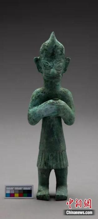 三星堆出土青銅扭頭跪坐人像 展現(xiàn)三千多年前古蜀寫實(shí)雕塑藝術(shù)