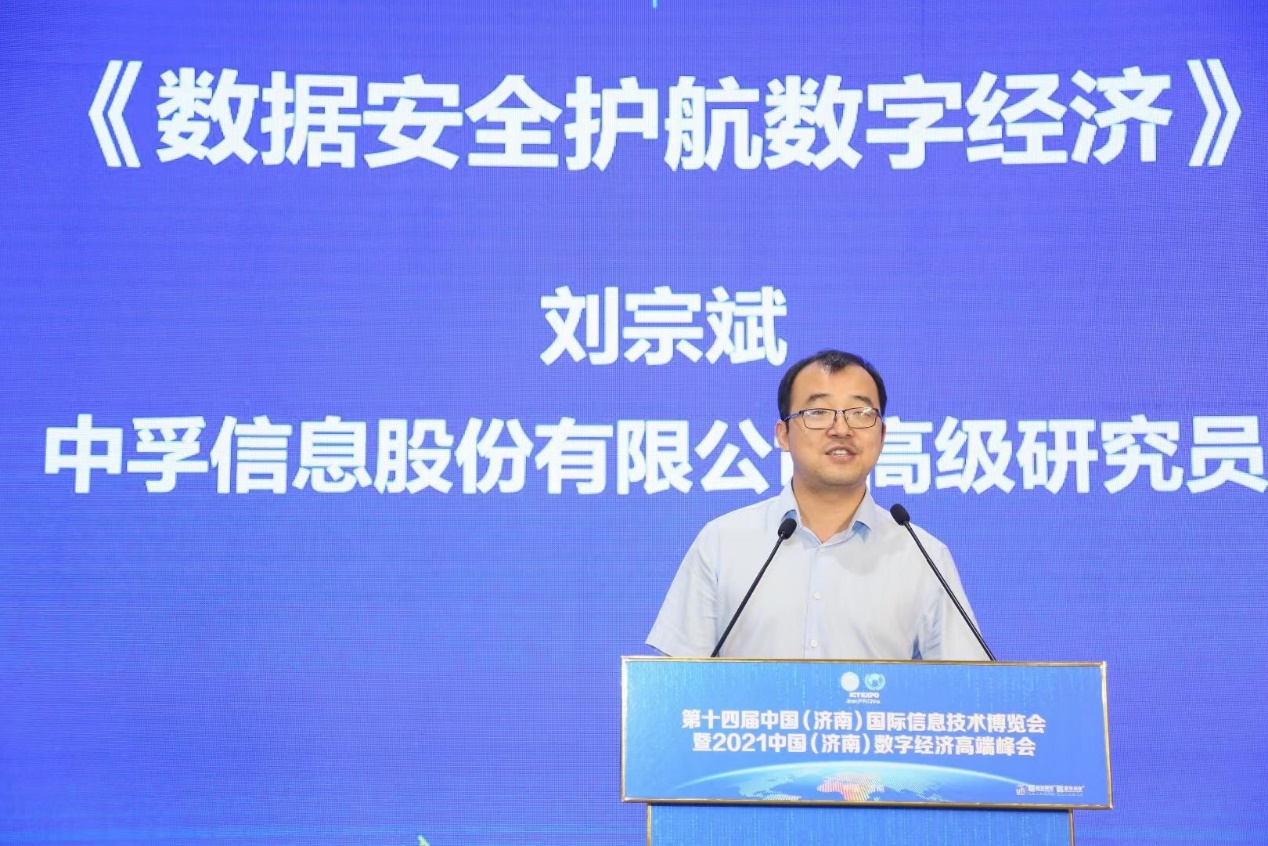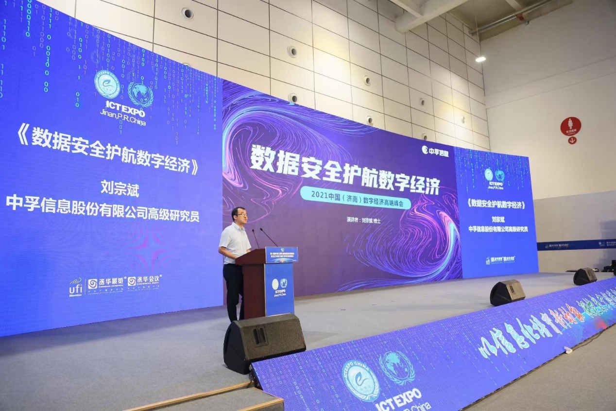 在博覽會同期舉辦的“2021中國(濟南)數(shù)字經(jīng)濟高端峰會”上,中孚信息研究院高級研究員劉宗斌與來自行業(yè)內(nèi)的20多名專家學者和企業(yè)代表現(xiàn)場圍繞數(shù)字經(jīng)濟發(fā)展總趨勢、“雙碳”背景下的數(shù)字化轉(zhuǎn)型、數(shù)據(jù)安全護航數(shù)字經(jīng)濟、新基建引領(lǐng)智慧城市高質(zhì)量發(fā)展等內(nèi)容展開交流和探討。