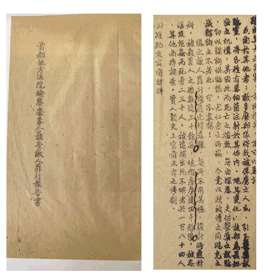 《首都地方法院檢察處奉令調(diào)查敵人罪行報(bào)告書》(南京市檔案館提供)