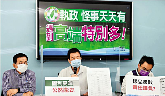 圖:國(guó)民黨立委召開(kāi)記者會(huì),批評(píng)臺(tái)當(dāng)局處處偏袒“高端”疫苗。\資料圖片