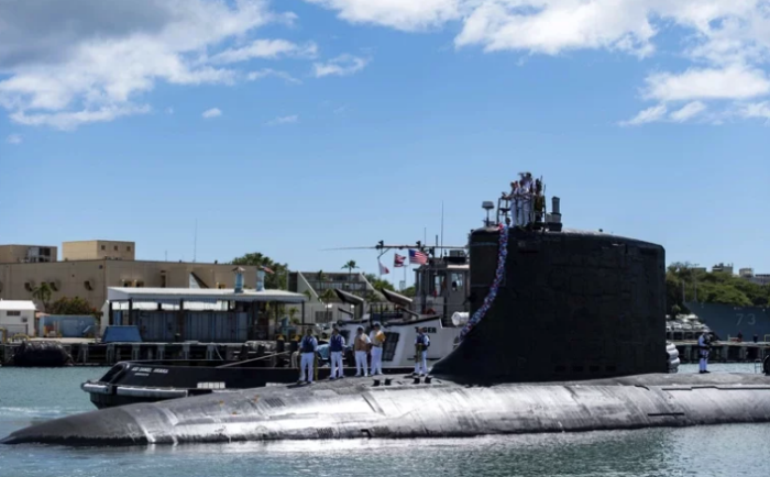 美英澳三國(guó)宣布組建新的印太安全聯(lián)盟,美英將幫助澳洲裝備核潛艦。圖為美國(guó)海軍第七艦隊(duì)裝備的弗吉尼亞級(jí)快速攻擊潛艦USS Illinois號(hào)。(美聯(lián)社)
