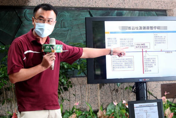 臺當(dāng)局“農(nóng)委會主委”陳吉仲針對“大陸暫停臺灣釋迦及蓮霧輸入之因應(yīng)措施”記者會。圖片來源:臺灣《中國時報》
