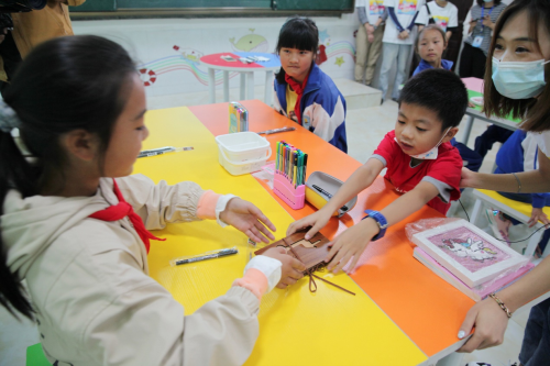 在“破冰”的第一節(jié)美術(shù)課上,志愿者美術(shù)老師以有趣的互動(dòng)游戲,迅速拉近了納雍和深圳兩地小朋友的距離。而來自深圳的孩子更是準(zhǔn)備了一份自己制作的“小小見面禮”,送給老地小學(xué)的新朋友們,讓美好的種子在此開始生根發(fā)芽。