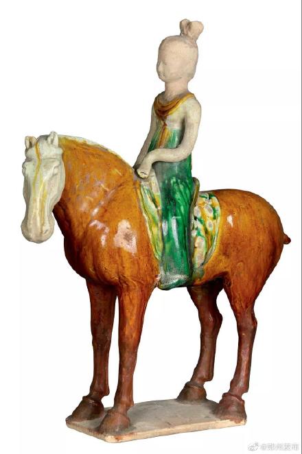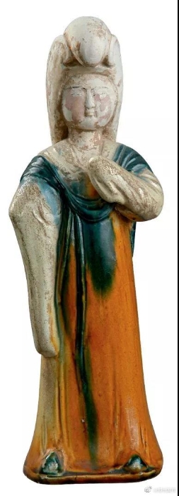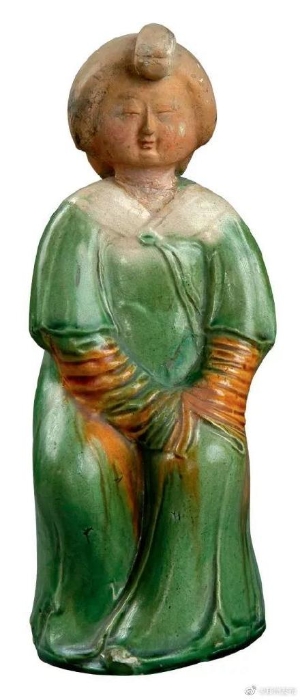 這里是河南【《唐宮夜宴》中唐宮小姐姐 “唐朝少女”的原型——唐三彩女俑】展柜里的唐三彩女俑圓潤嬌俏、面含微笑,短襦窄袖羅帛垂胸,長裙曳地,與《唐宮夜宴》中的“小姐姐”似“復制粘貼”般如出一轍。