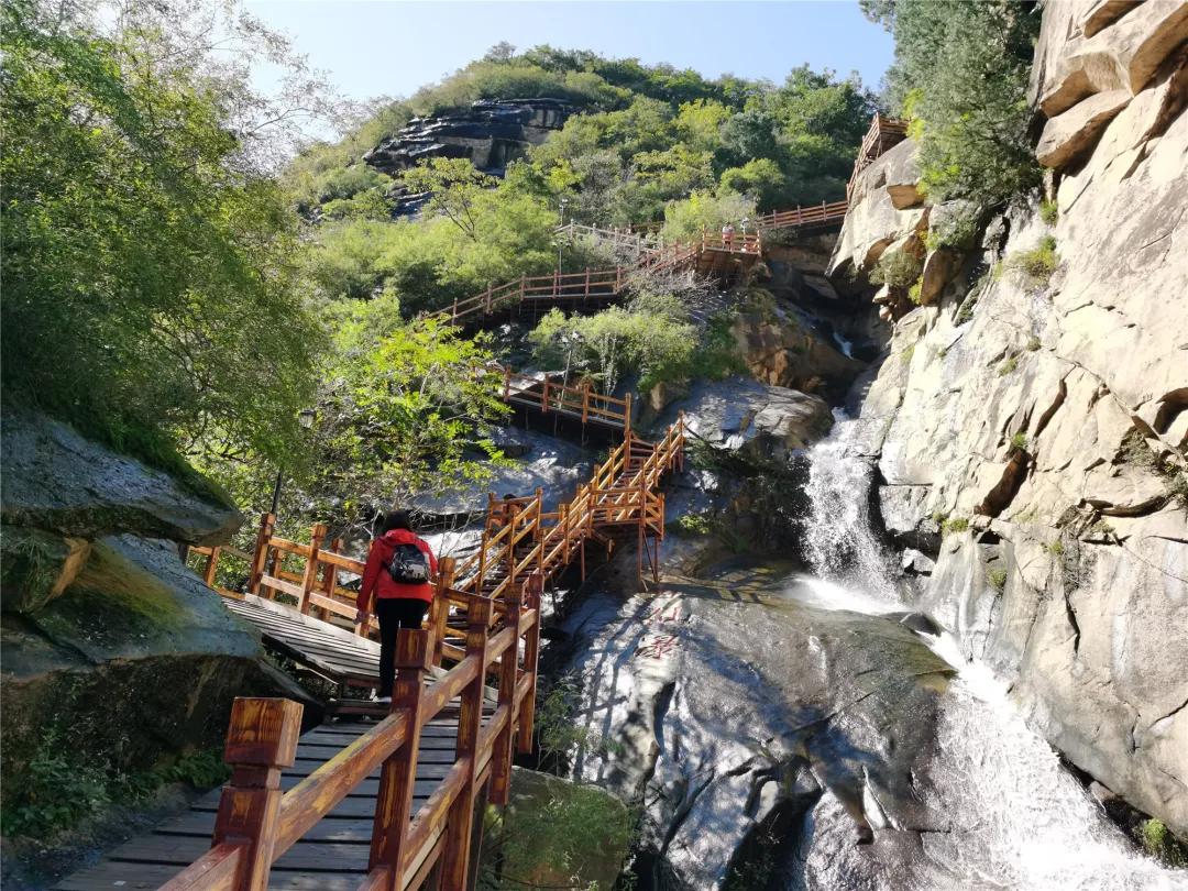 清涼谷,有綿延層疊的山峰,木質(zhì)的階梯,每一層臺階都在訴說古老的故事。拾階而上,聽飛瀑流泉,尋秋的氣息。
