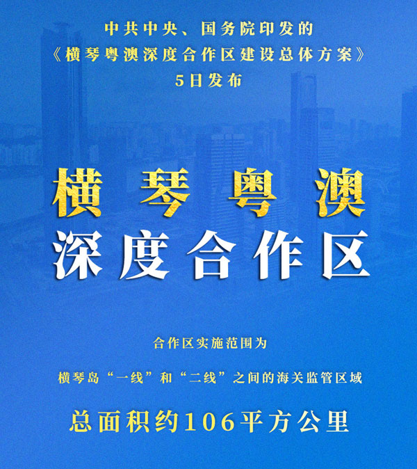 中共中央、國(guó)務(wù)院印發(fā)的《橫琴粵澳深度合作區(qū)建設(shè)總體方案》5日發(fā)布。建設(shè)橫琴新區(qū)的初心就是為澳門產(chǎn)業(yè)多元發(fā)展創(chuàng)造條件。新形勢(shì)下做好橫琴粵澳深度合作區(qū)開發(fā)開放,是深入實(shí)施《粵港澳大灣區(qū)發(fā)展規(guī)劃綱要》的重點(diǎn)舉措,這是豐富“一國(guó)兩制”實(shí)踐的重大部署,是為澳門長(zhǎng)遠(yuǎn)發(fā)展注入的重要?jiǎng)恿Γ欣谕苿?dòng)澳門長(zhǎng)期繁榮穩(wěn)定和融入國(guó)家發(fā)展大局。