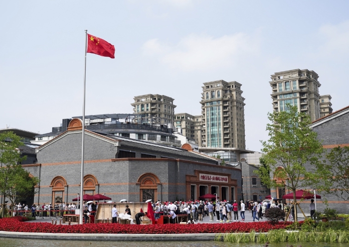 ? ?觀眾排隊進(jìn)入中共一大紀(jì)念館參觀(6月12日攝)。新華社記者 丁汀 攝