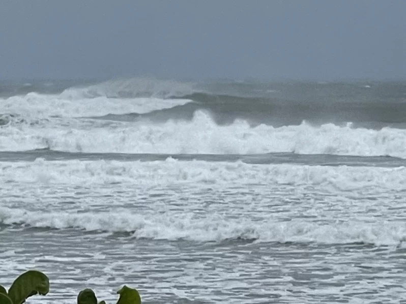 恒春沖浪教練阿水中午在佳樂(lè)水茶灣沙灘,他觀察,恒春半島東岸已掀起兩樓高風(fēng)浪,現(xiàn)場(chǎng)也沒(méi)有任何水上活動(dòng)進(jìn)行,注意游客、釣客,要與岸邊保持安全距離。