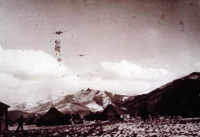 △美軍C-119運輸機空投補給品。圖源:中國軍網
