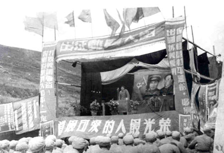 △志愿軍某部召開出征動員大會。圖源:中國軍網(wǎng)