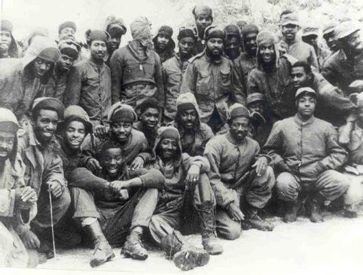 △1950年11月,在志愿軍的軍事壓力和優(yōu)待俘虜政策的感召下,美軍第25師第24團1個黑人連(115人)士兵向志愿軍繳械投降。