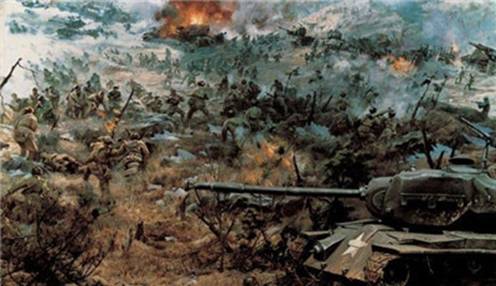 △孫立新作 激戰(zhàn)松骨峰(油畫)來源:中國軍網(wǎng)-解放軍報