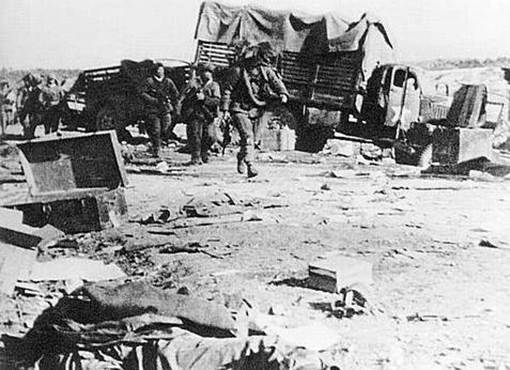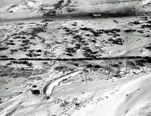△美軍陸1師從古土里撤退(航拍)。圖源:中國軍網(wǎng)