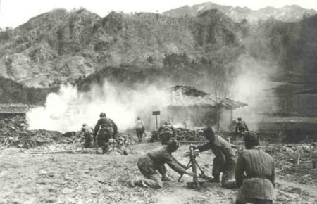 臨津江位于漢城以北75公里處,中游一段橫瀉在“三八線”上,時(shí)值寒冬,冰雪堆積深厚,南岸均為天然峭壁不便攀登,韓國(guó)第1步兵師憑借臨津江天險(xiǎn),構(gòu)成了縱深約9公里的3道防御陣地,號(hào)稱"銅墻鐵壁、不可逾越"。突破臨津江,既是重中之重,又是難上之難,作為第三次戰(zhàn)役的關(guān)鍵一環(huán),這項(xiàng)艱巨任務(wù)被交由志愿軍39軍116師完成。在兵力兵器總體優(yōu)勢(shì)不大的情況下,臨津江畔較量的關(guān)鍵,首先落在了進(jìn)攻的突然性和戰(zhàn)前準(zhǔn)備的充分程度上。經(jīng)過精確計(jì)算和萬(wàn)全準(zhǔn)備,12月31日,第39軍116師僅用11分鐘即突破敵軍的江岸防線,勝利完成了突破任務(wù)。