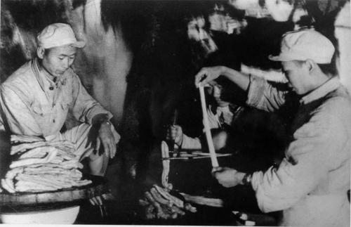 據(jù)不完全統(tǒng)計(jì),志愿軍1952年共種蔬菜276300畝,收獲蔬菜近2289萬公斤,平均每人20多公斤,采集野菜約134萬公斤,許多伙食單位還開設(shè)了豆腐坊,做豆腐、生豆芽,部隊(duì)生活得到了一定程度的改善。