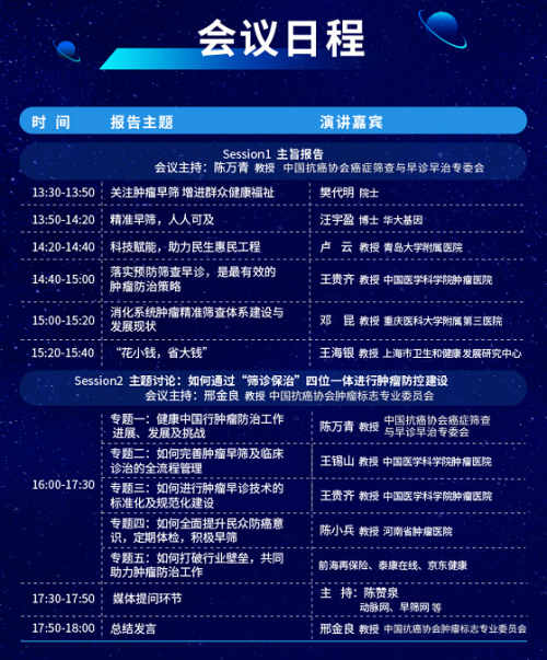本屆峰會共設有“前沿技術專場”、“腫瘤防控專場”、“婦科腫瘤專場”、“腫瘤精準醫(yī)學中心建設標準和規(guī)范”等四大細分領域,其中“腫瘤防控專場”(10月23日13:30~18:00)重度聚焦腫瘤早篩領域,邀請了國內頂級嘉賓陣容——業(yè)界15位腫瘤領域專家坐鎮(zhèn),200+位行業(yè)及媒體大咖齊聚,共話癌癥早篩。