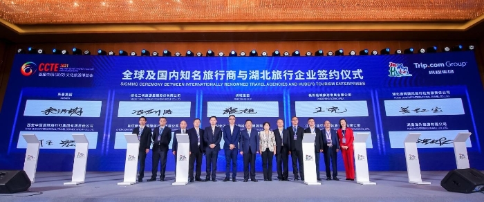 戰(zhàn)略合作簽約儀式上,全球及國內(nèi)知名旅行商與多家湖北旅行企業(yè)簽約,共同攜手,助推湖北文旅產(chǎn)業(yè)提質(zhì)增效。大會現(xiàn)場,攜程集團(tuán)正式發(fā)布了“深耕湖北、扎根湖北”行動計劃。攜程將依托平臺資源優(yōu)勢,加大對湖北文化旅游產(chǎn)品的宣傳推介和惠民政策宣導(dǎo)。以省級星球號旗艦店、TRIP.COM國際版多語種旅游推介專輯、文旅直播帶貨等方式,開展精準(zhǔn)營銷。同時,通過政企合作的方式,助力湖北文旅加快引進(jìn)大企業(yè)、大項目,并以當(dāng)前市場需求為導(dǎo)向研發(fā)、推廣高端精品化、定制個性化、服務(wù)特色化的度假旅游產(chǎn)品。在鄉(xiāng)村振興方面,攜程將深入湖北鄉(xiāng)村,深度挖掘旅游資源,以攜程度假農(nóng)莊為范例,通過開發(fā)當(dāng)?shù)孛袼拶Y源,開展鄉(xiāng)村文旅從業(yè)者培訓(xùn)等方式,打造鄉(xiāng)村旅游目的地樣板,孵化更多的旅游人才。