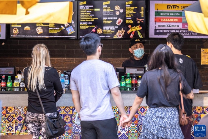 10月18日,人們在澳大利亞悉尼一家恢復(fù)營業(yè)的快餐店點餐。