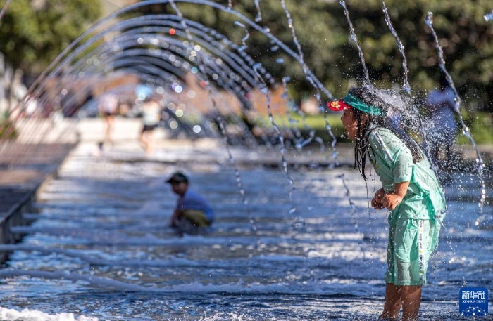10月18日,兒童在澳大利亞悉尼一處戶外噴水池玩耍。