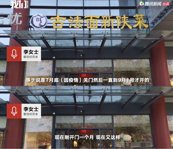 ▲該餐館經(jīng)營者表示,自己的門店曾于7月底因為疫情關(guān)門停業(yè)。圖/新京報我們視頻截圖
