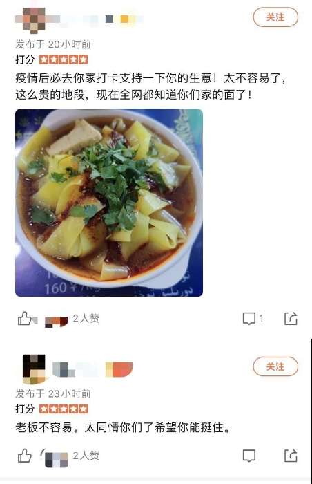 另外一方面,這家“倒霉面館”也是個提示,有不少類似的商家都因為疫情遭受了不小的困難。