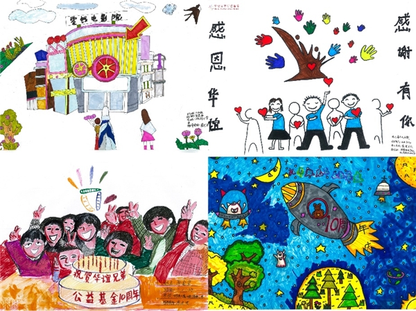 今年6月,本次十周年特展面向全國“零錢電影院”所在學(xué)校和華誼兄弟全體員工征集畫作,共計收到600余幅報名作品。經(jīng)過“零錢電影院”所在學(xué)校老師和華誼兄弟公益基金工作人員的認真評選,最終有100幅作品脫穎而出。10月19日至11月19日,觀眾可以隨時在線欣賞小朋友們的創(chuàng)作,還可以通過收藏和分享喜愛的畫作,為孩子們加油助力。