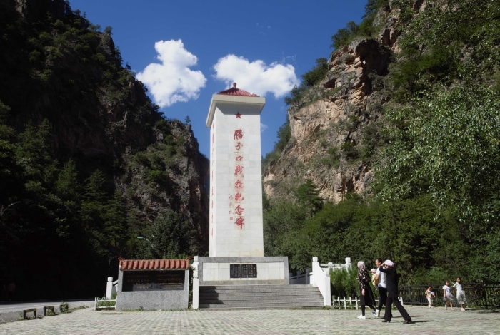 游客在臘子口戰(zhàn)役舊址參觀臘子口戰(zhàn)役紀念碑(2019年8月15日攝)。新華社記者 羅曉光 攝